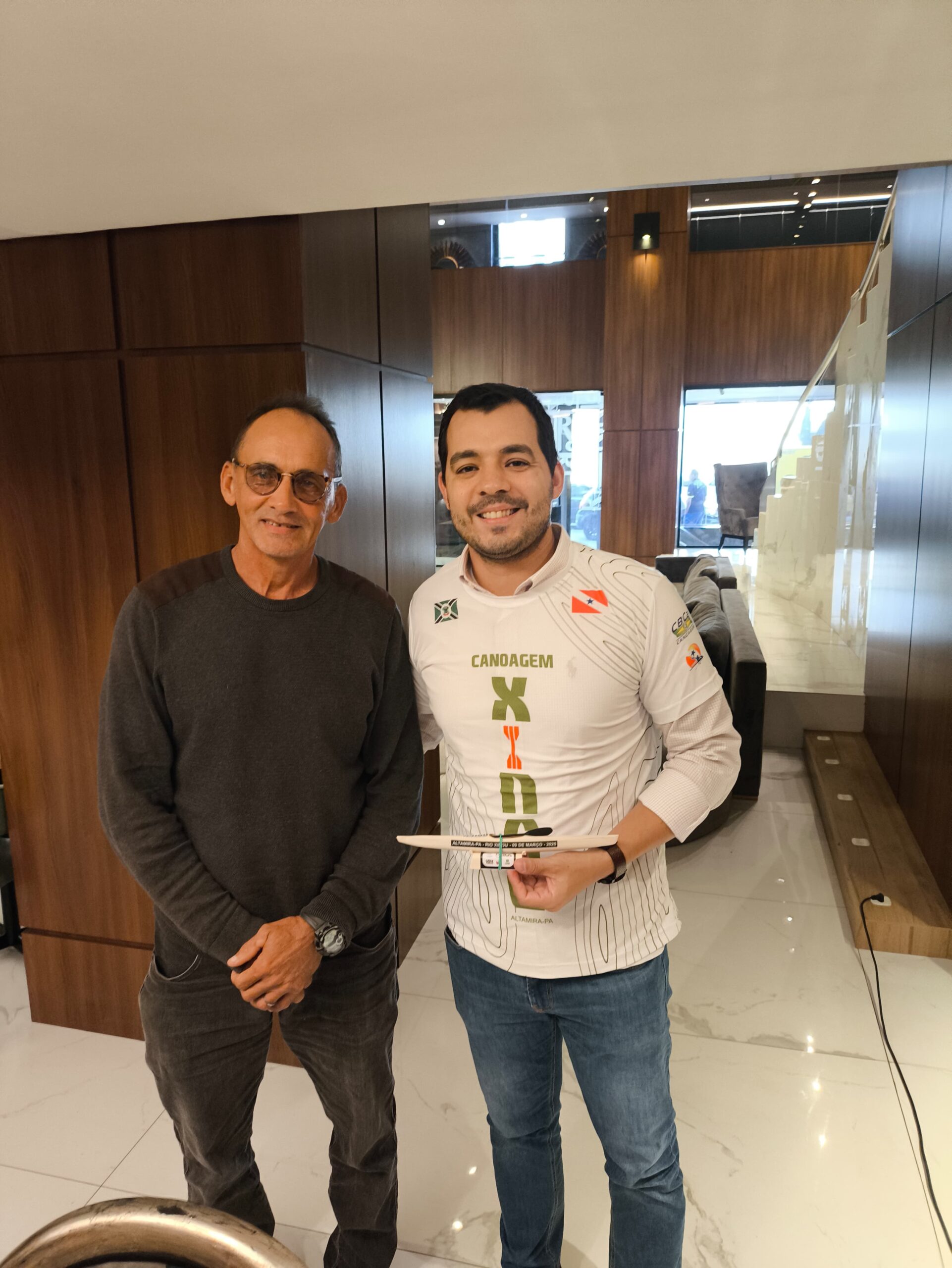 Presidente da Confederação Brasileira de Canoagem – CBCA e o presidente da Federação de Canoagem do Eatado do Pará – FECAEPA. Apoiadores incondicionais do projeto Canoagem Xingu, tanto na implantação, desenvolvimento e nas competições nacionais.